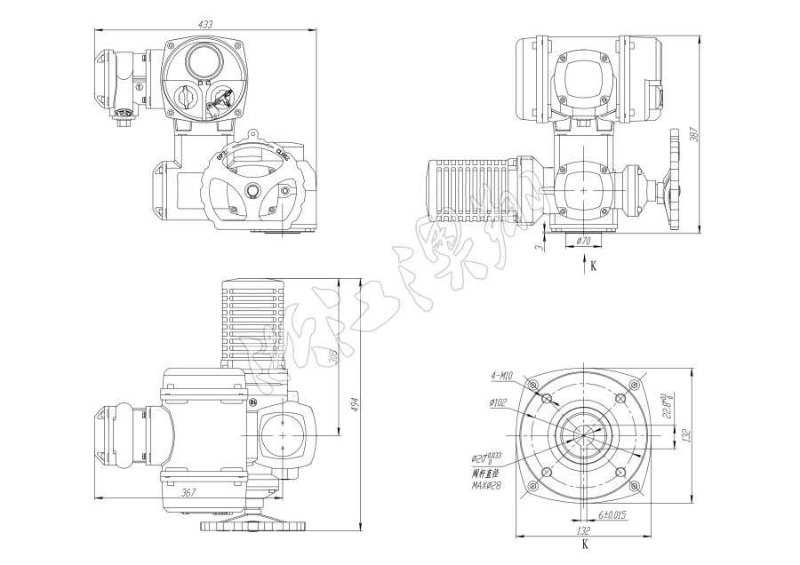 底部安裝尺寸符合ISO5210標準,驅動軸套可拆下根據需要進行加工,兼容性好。可以垂直安裝,也可以水平安裝。